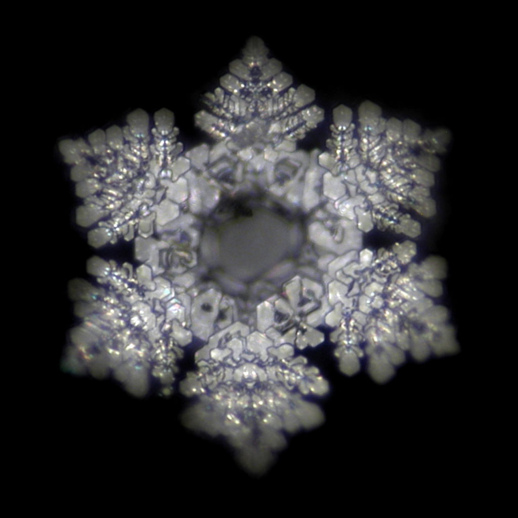 Der Eiskristall ist deutlich zu erkennen und auch die hexagonale Struktur des Wassers wird sichtbar.
