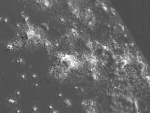 Bei den Mikroskopaufnahmen von gefrorenem Wasser, das nicht mit aqua blue behandelt wurde ist keine Struktur/ Ordnung zu erkennen. Man keine sechs-eckige Form und keinen schönen Eiskristall erkennen.